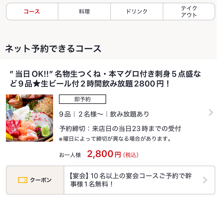 刺身5点盛りが料理5つカウントだった時に比べりゃ。