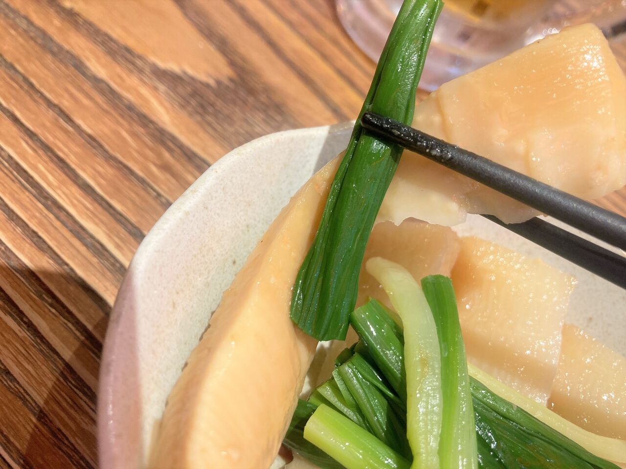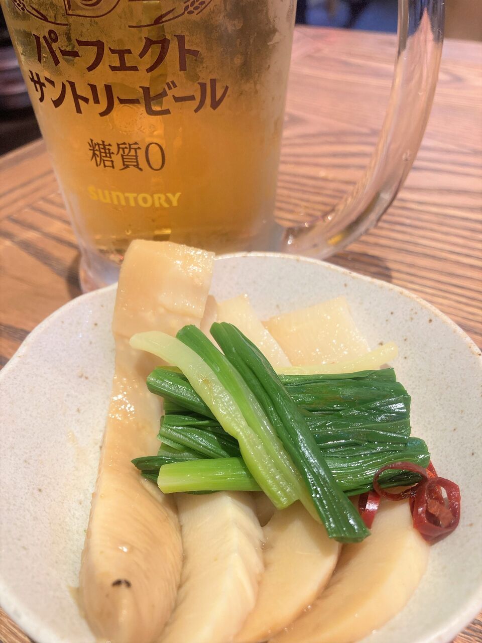 行者にんにくとたけのこの醤油漬けを先行に。