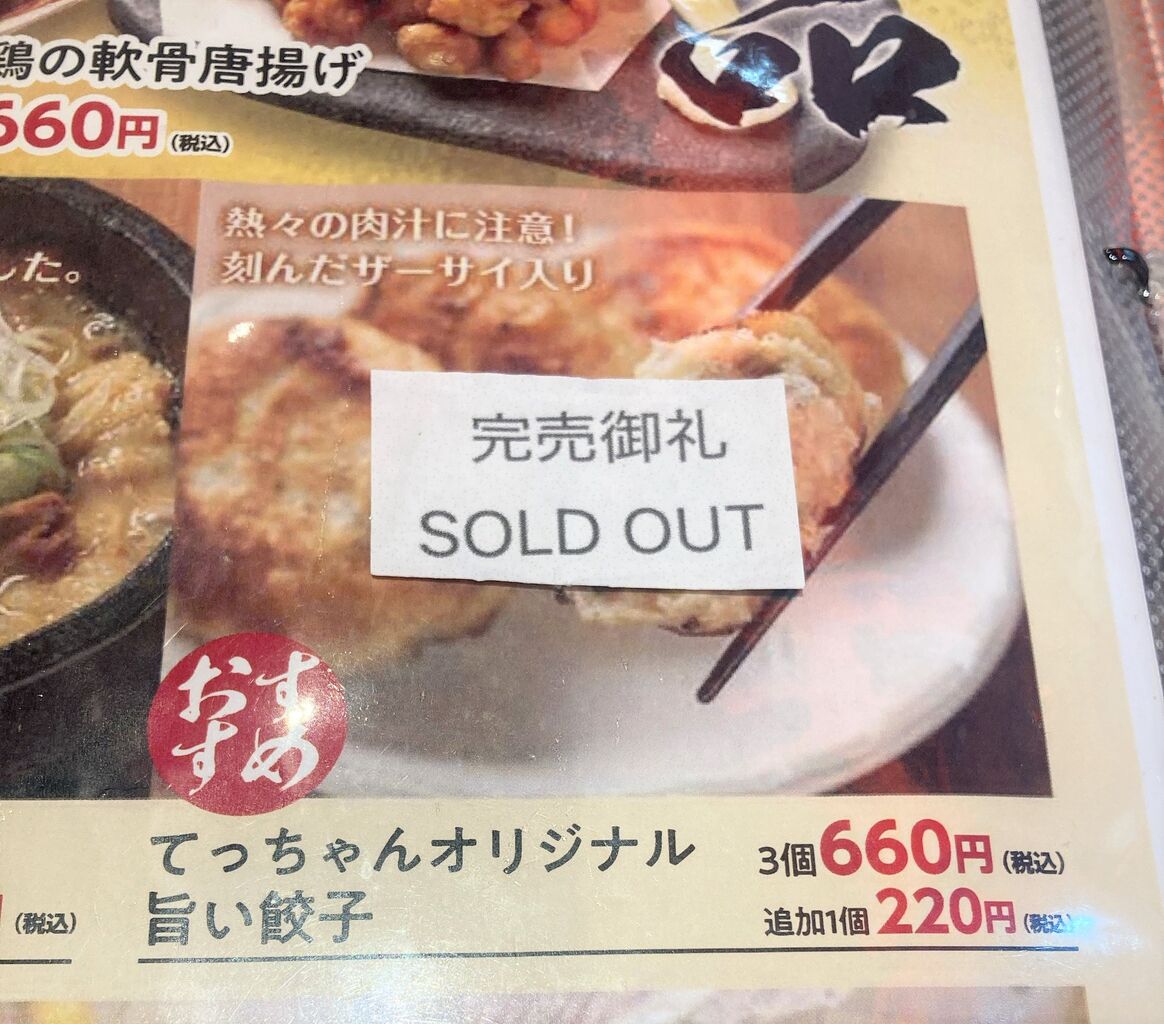 メニュー数の少なさ。