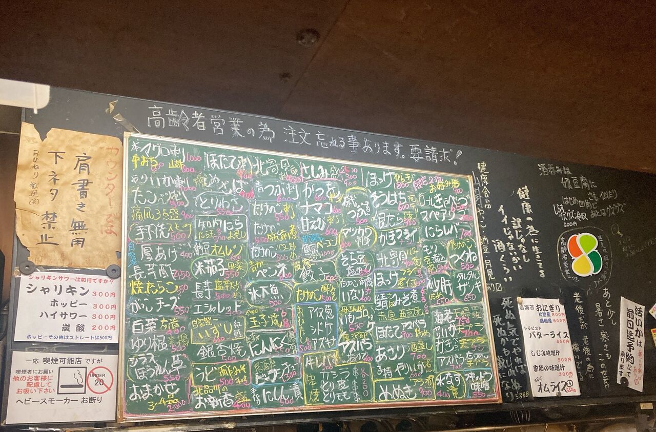 カウンター前の黒板メニューにも、