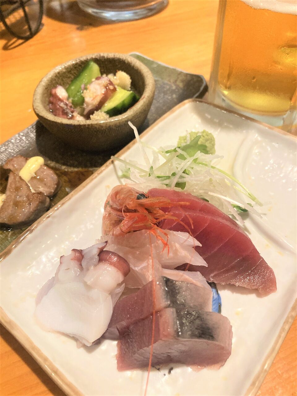 お通し、刺身、酒肴といった内容だ。