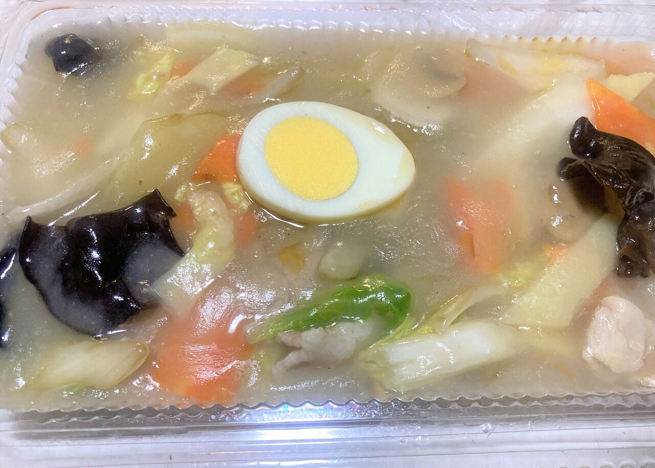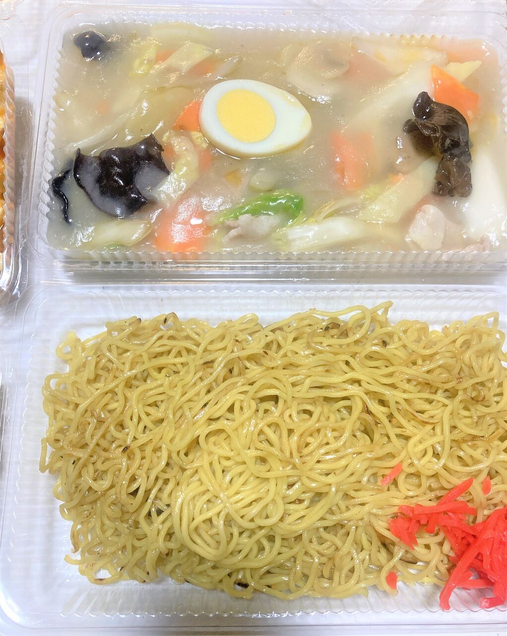 麺とあんかけを皿に移し、混ぜ合わせる作業。