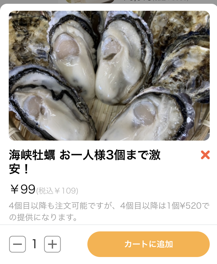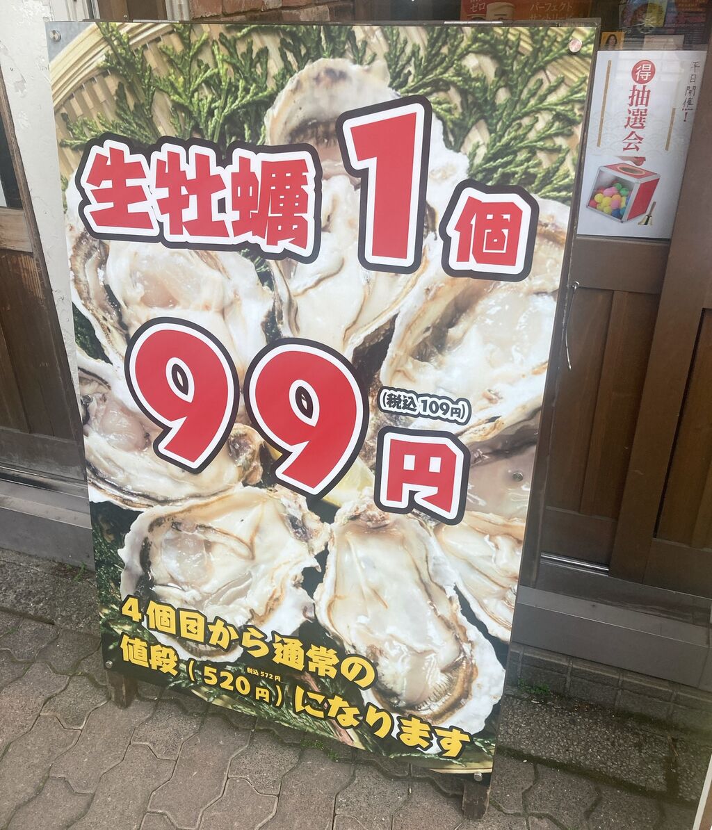 生牡蠣1個99円の看板を見た時、