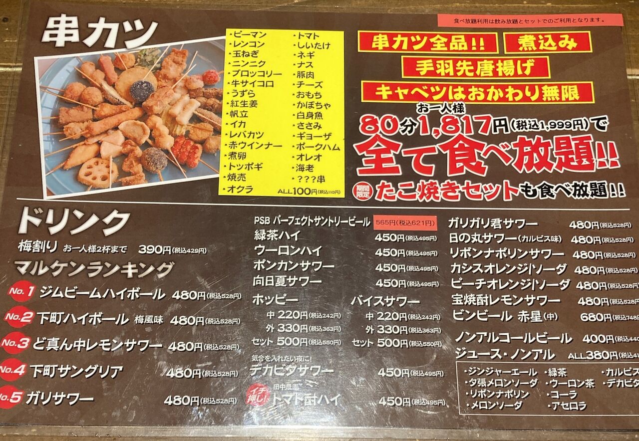 串カツ等が食べ放題になるコースもある。