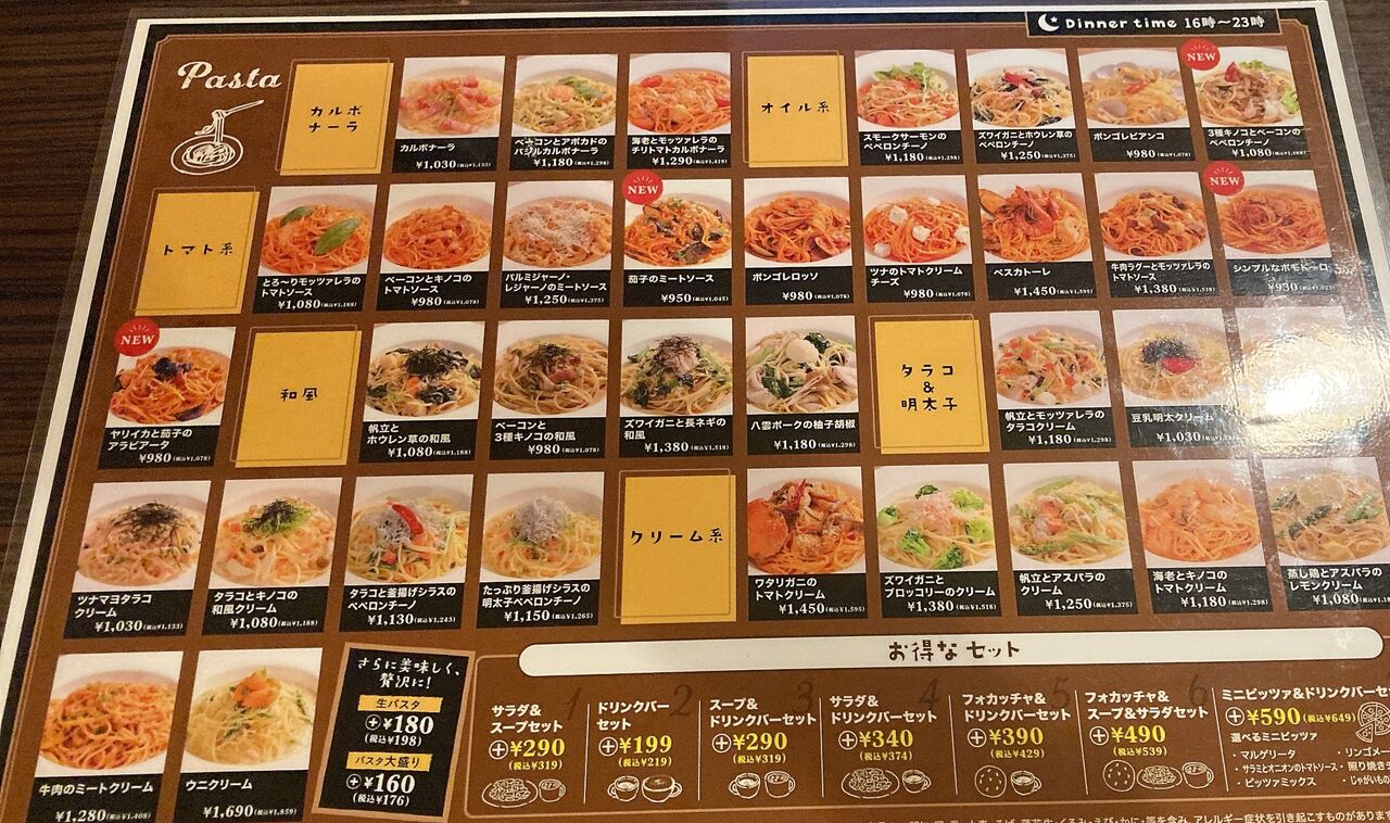 ピザはもういいから、パスタを頼もうと言い出した。