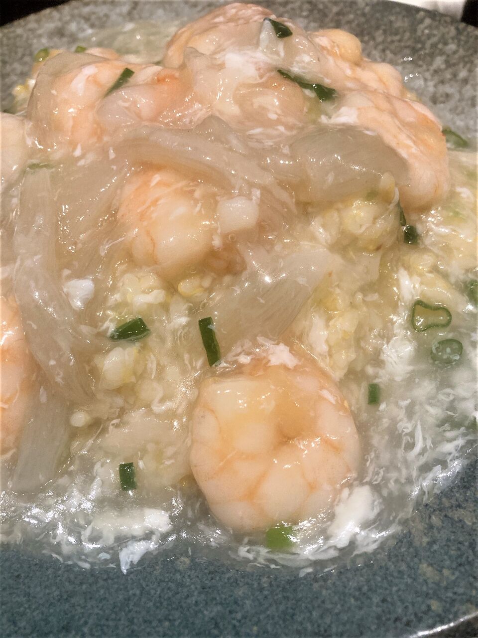海老やイカや野菜の炒め物。