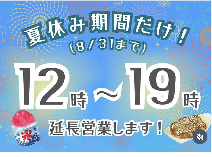 8月31日までは営業時間を延長して19時までの営業。