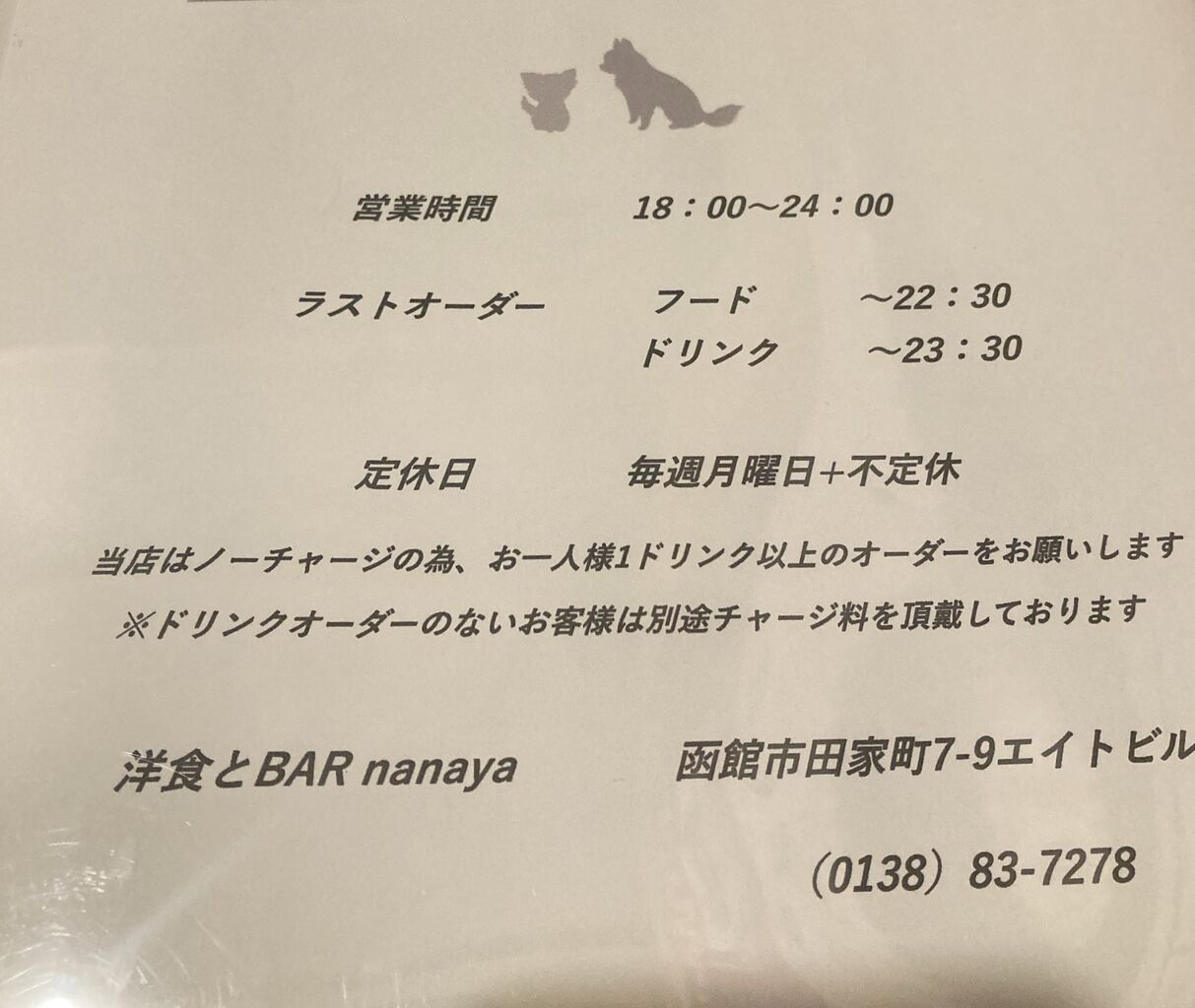 営業時間の文字の上に犬のシルエットがあるが、