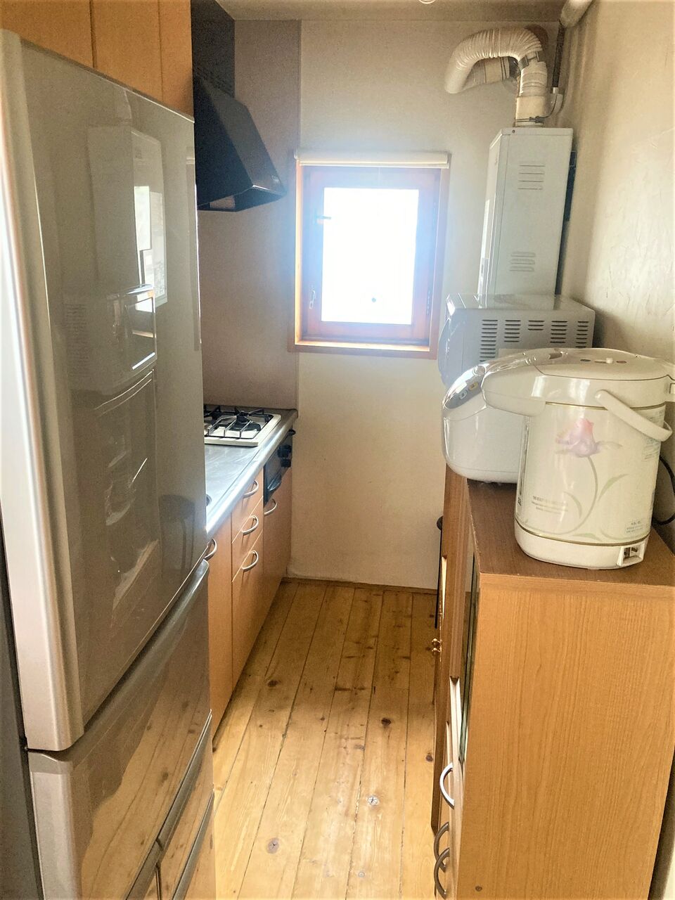 テレビ、冷蔵庫、ガスコンロ、食器、トイレ、暖房、電子レンジ、炊飯器、ドライヤー、調理器具、洗濯機があって、普通に暮らせる。