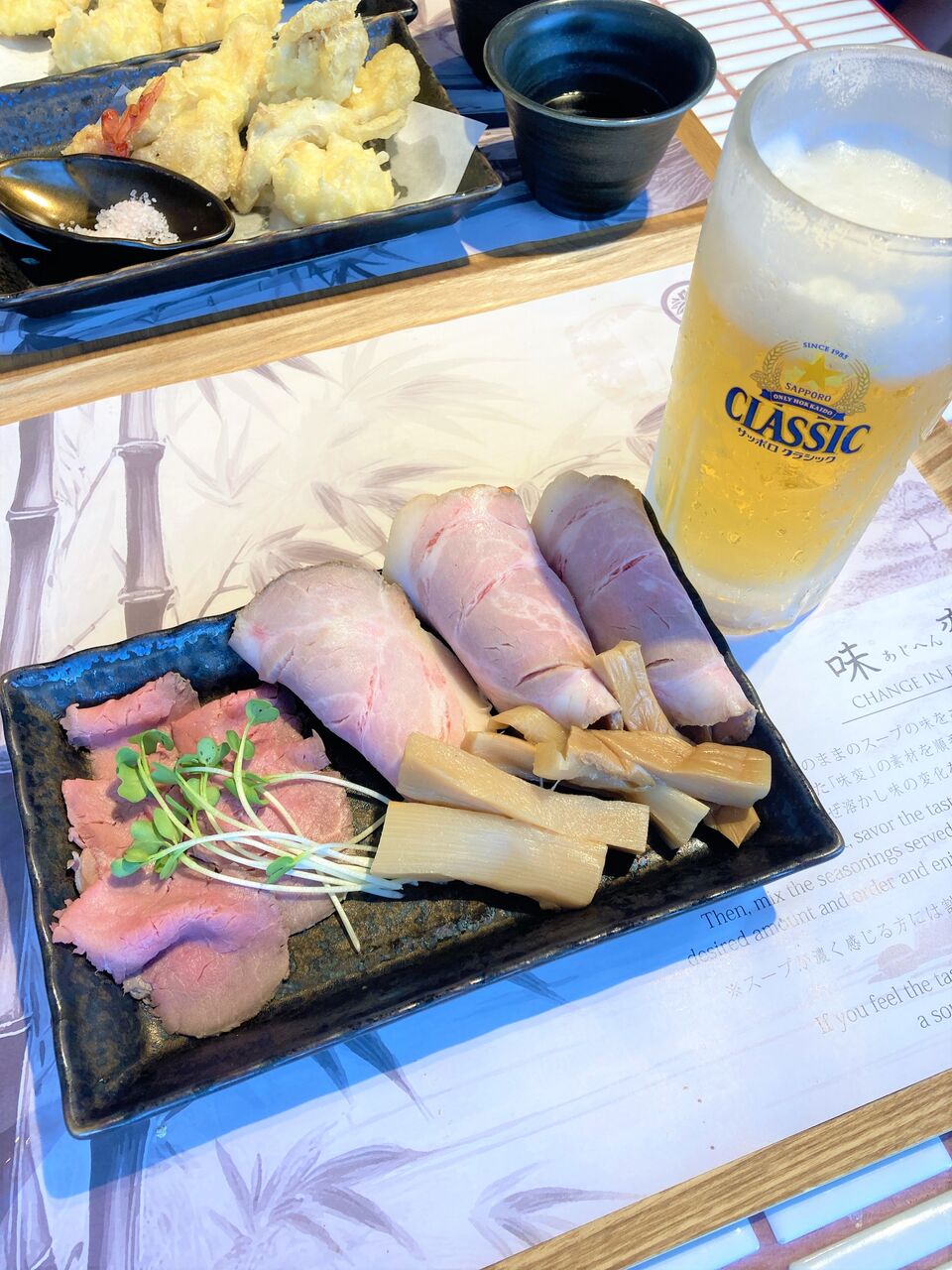 チャーシュー、極太メンマ。