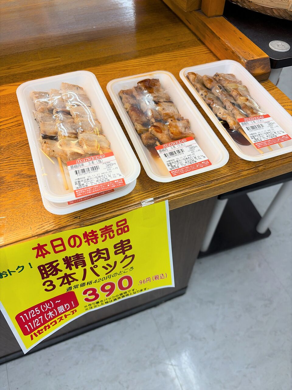 豚精肉串 3本パック 390.96円と、