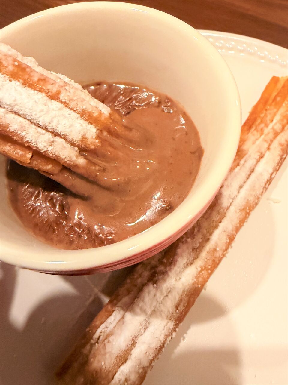 チョコレートドリンクの中にチュロスを沈め・・・
