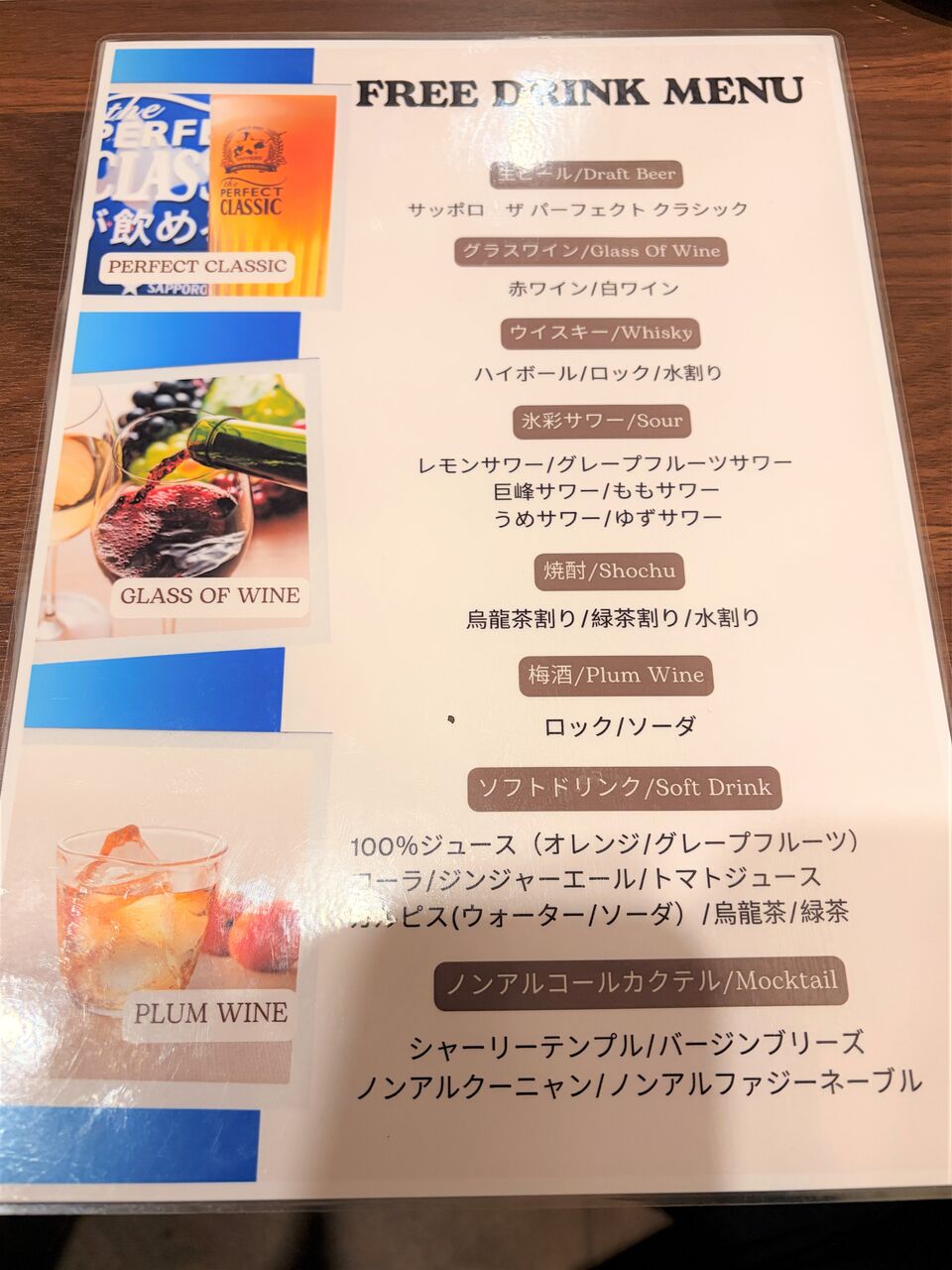 飲み放題メニュー。