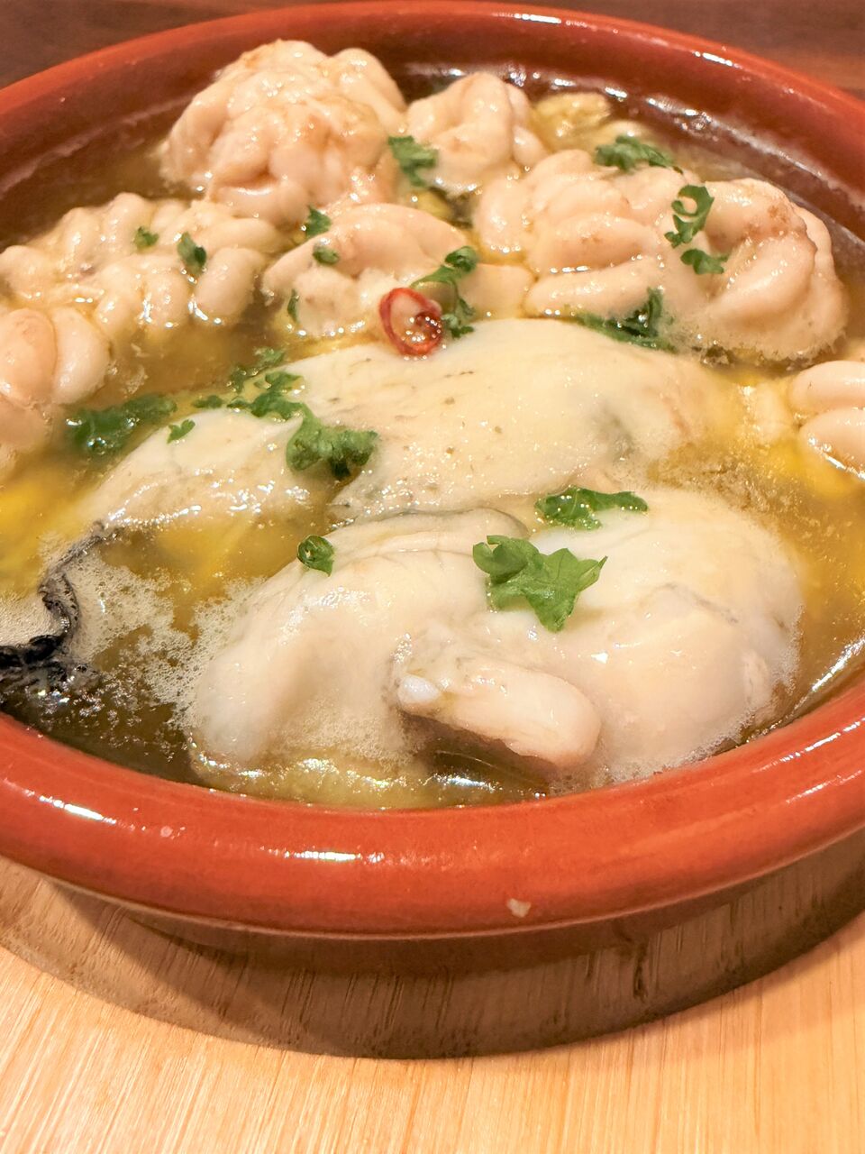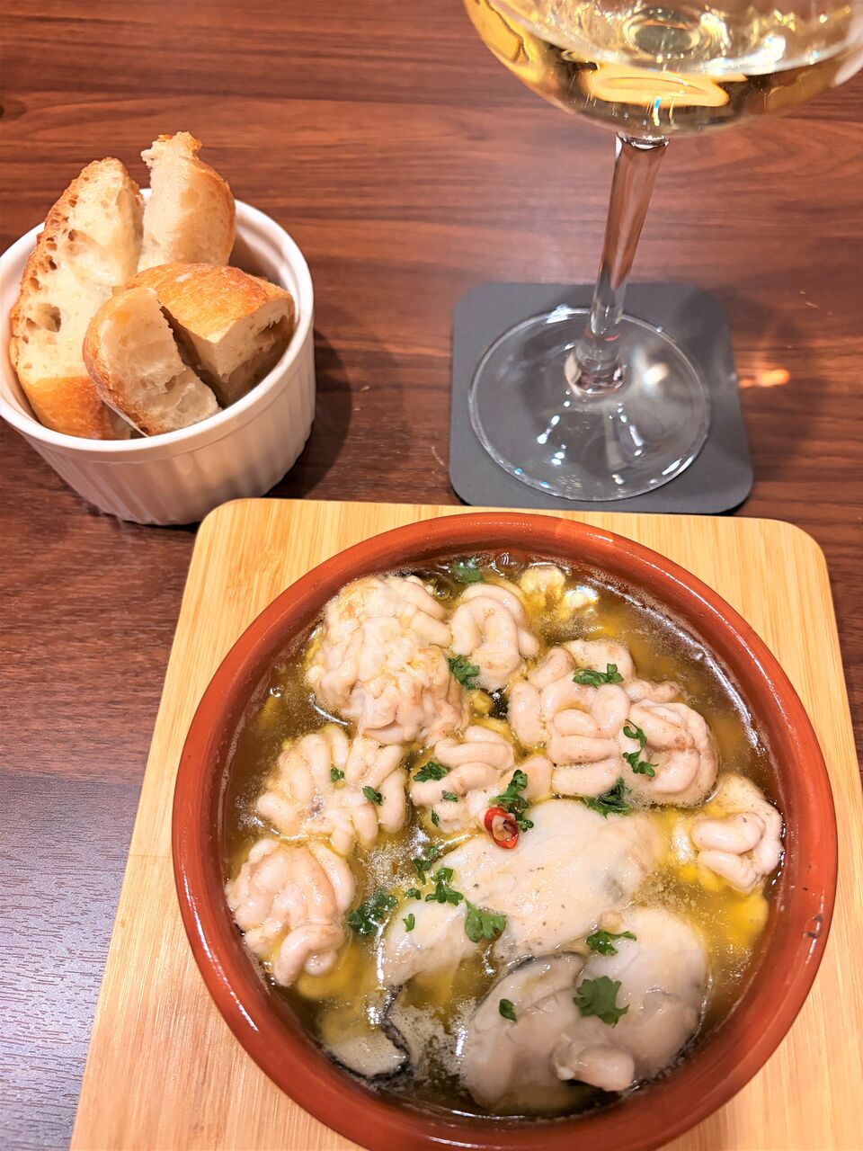 白子と牡蠣のアヒージョ 1800円(税込)を。