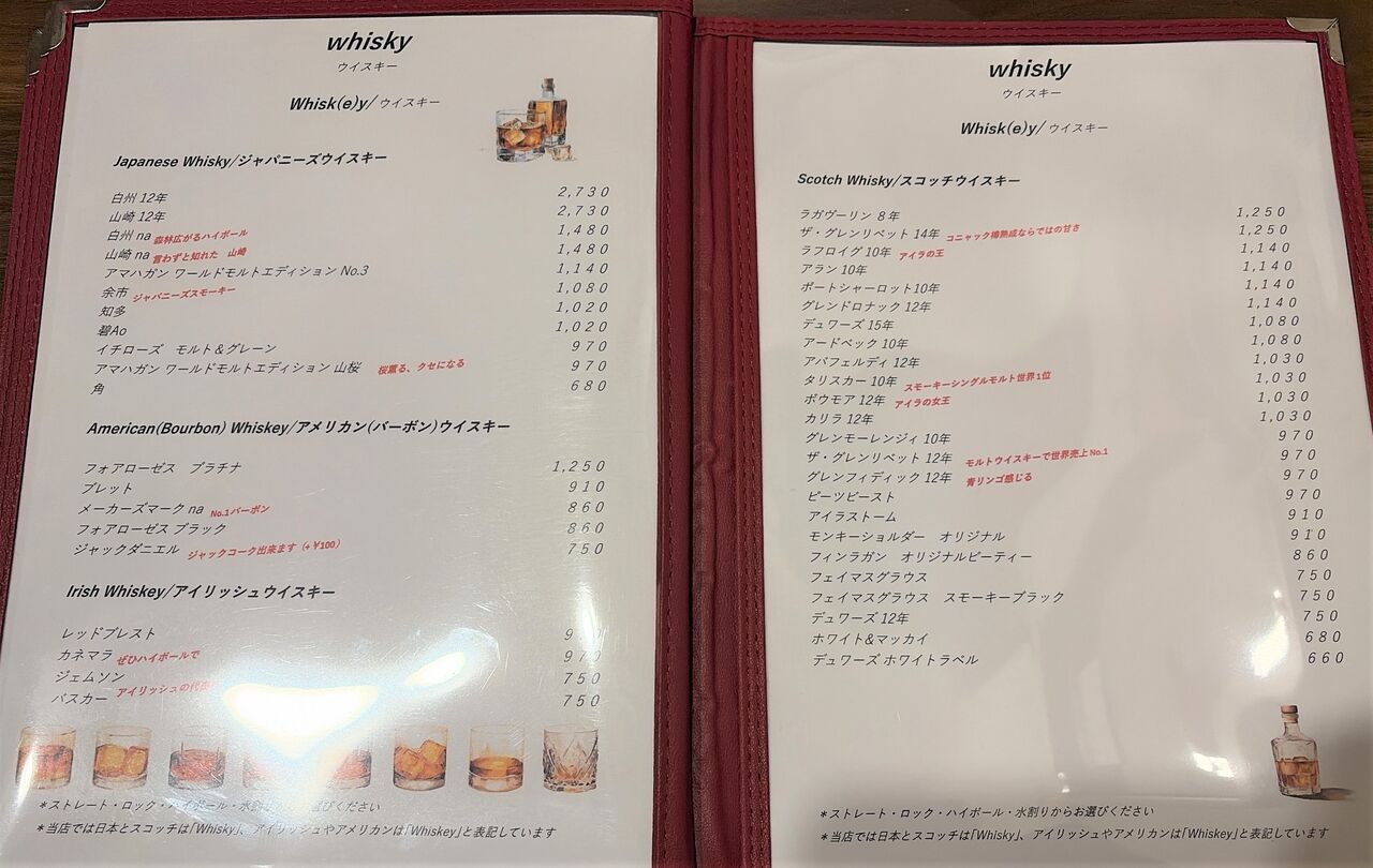 ウイスキーのメニューもあらためて見ると多いな。