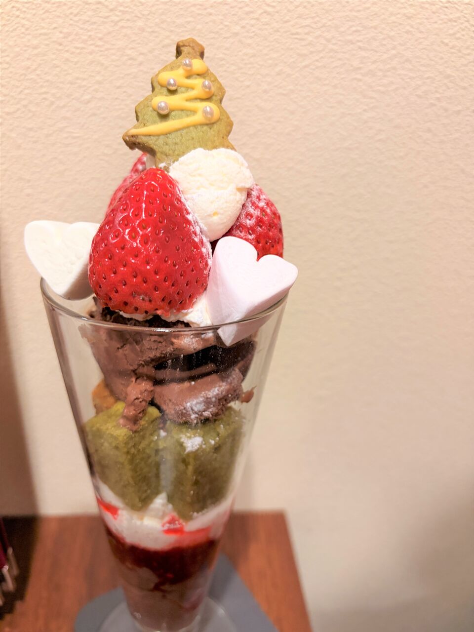 上にはクリスマスツリーのクッキー、いちごやマシュマロ。
