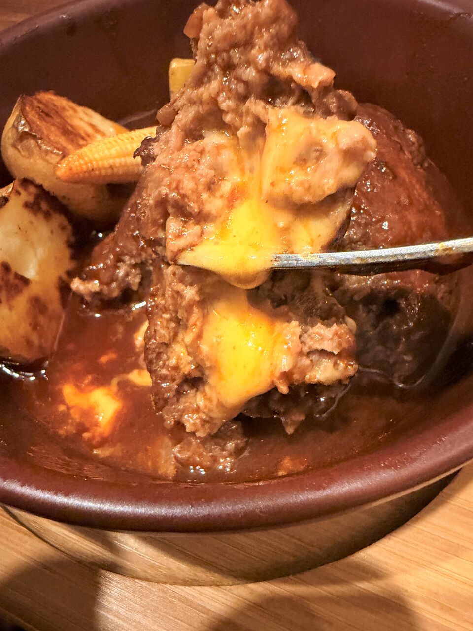 赤ワインで煮込まれたチーズバーグも、