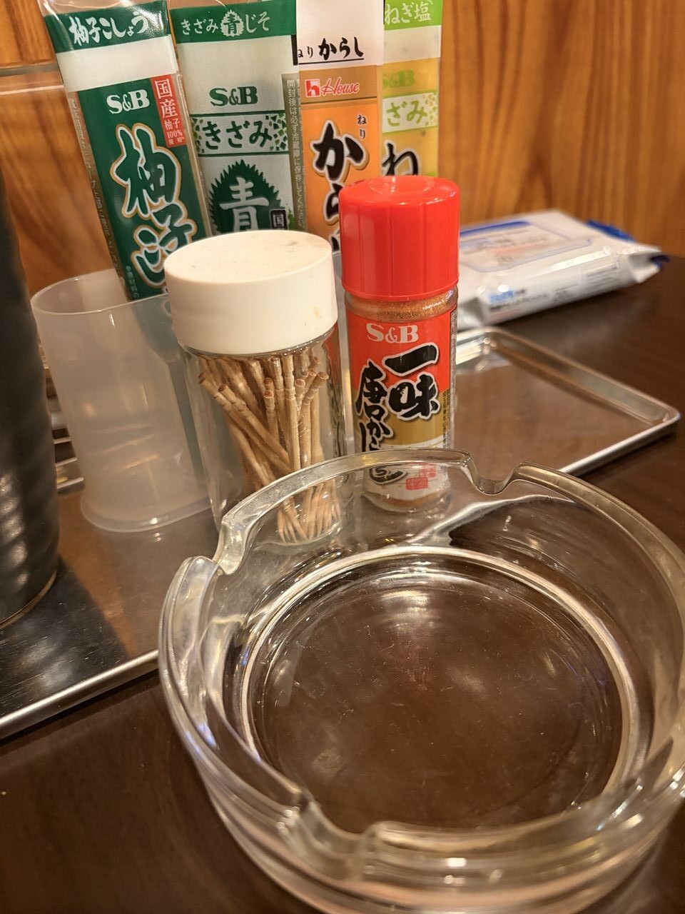 卓上調味料と灰皿。