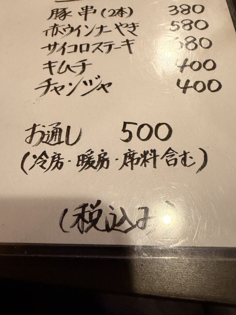 お通しは500円(税込)。