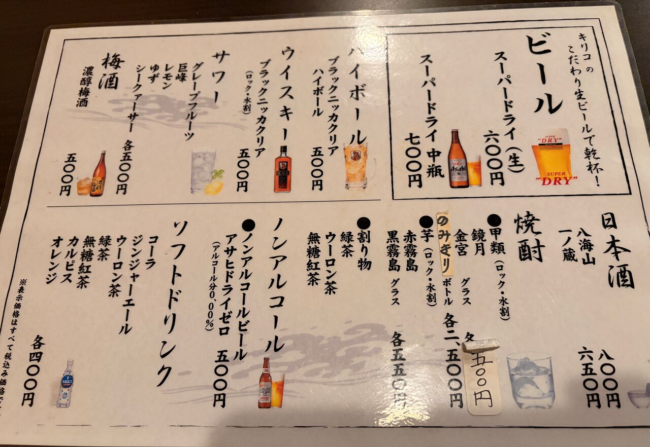 生ビールの銘柄は、アサヒスーパードライ。