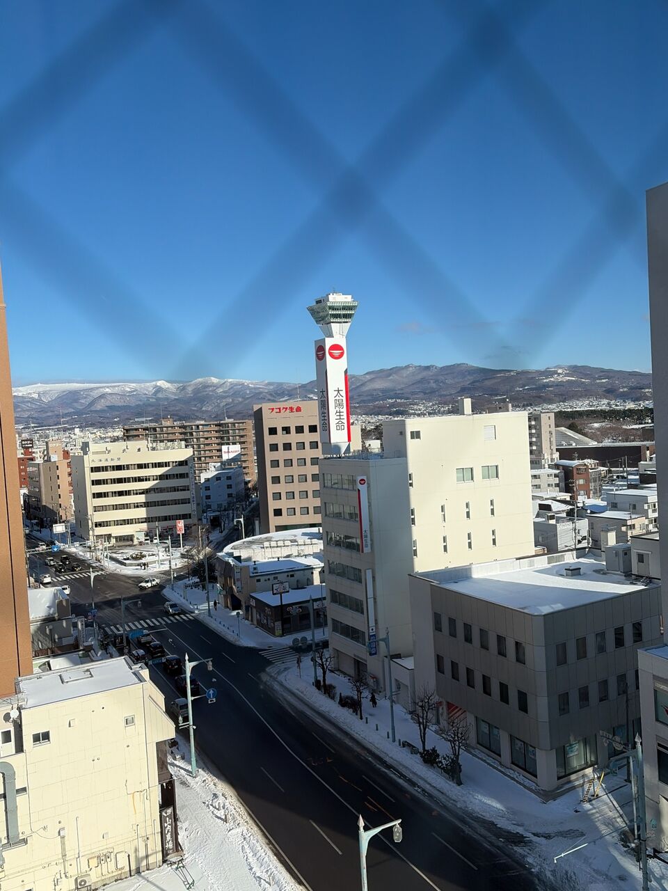 窓からの景色は五稜郭タワー。