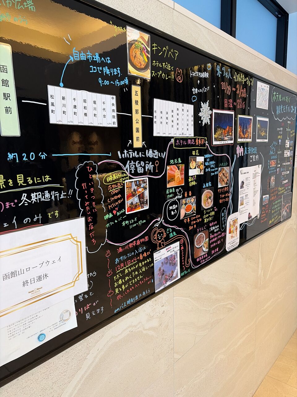 函館の飲食店の情報が手書きで。