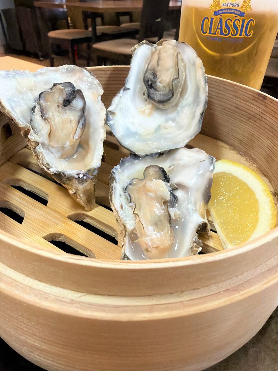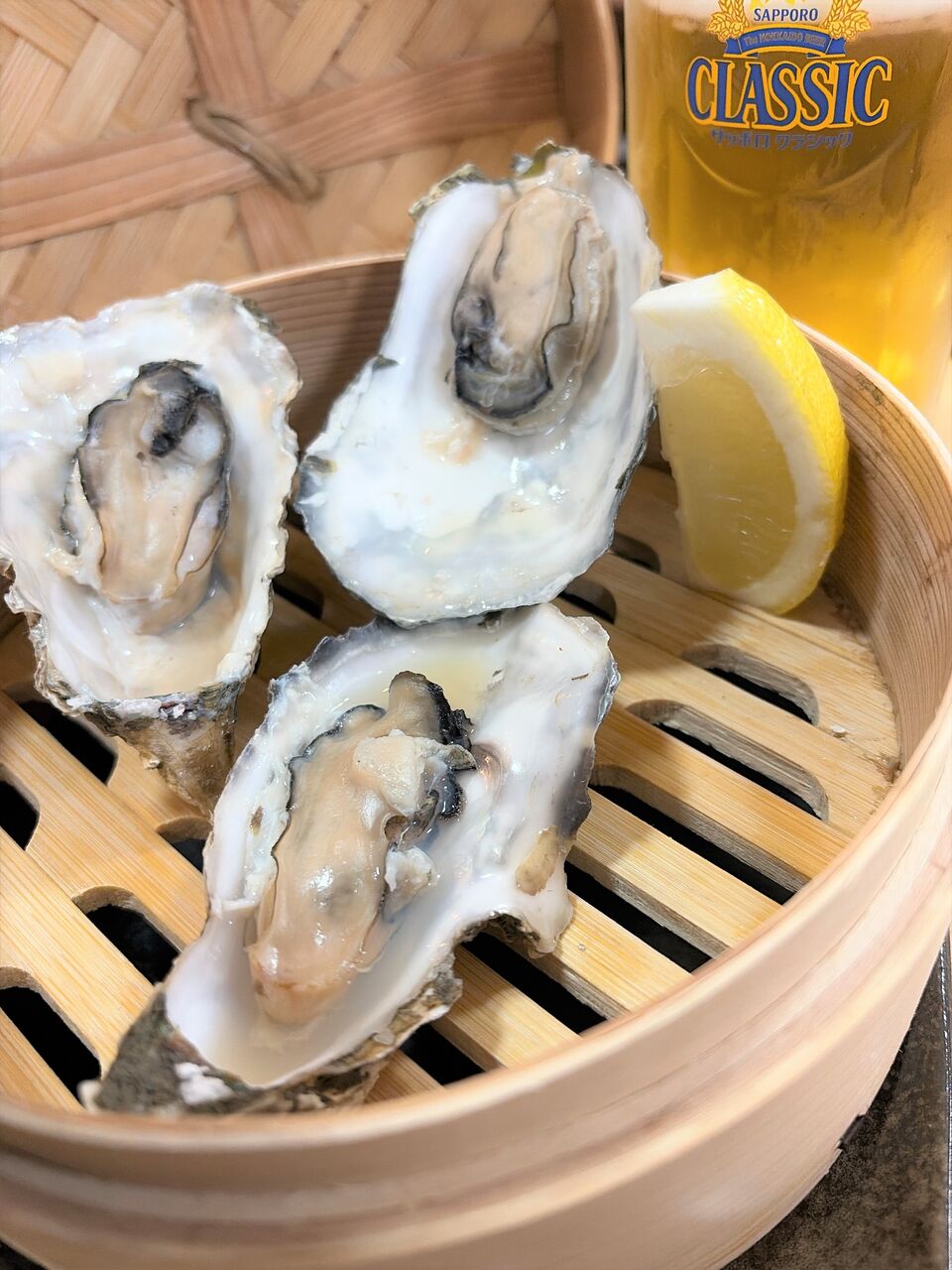 牡蠣のせいろ蒸し 3個 968円(税込)だ。