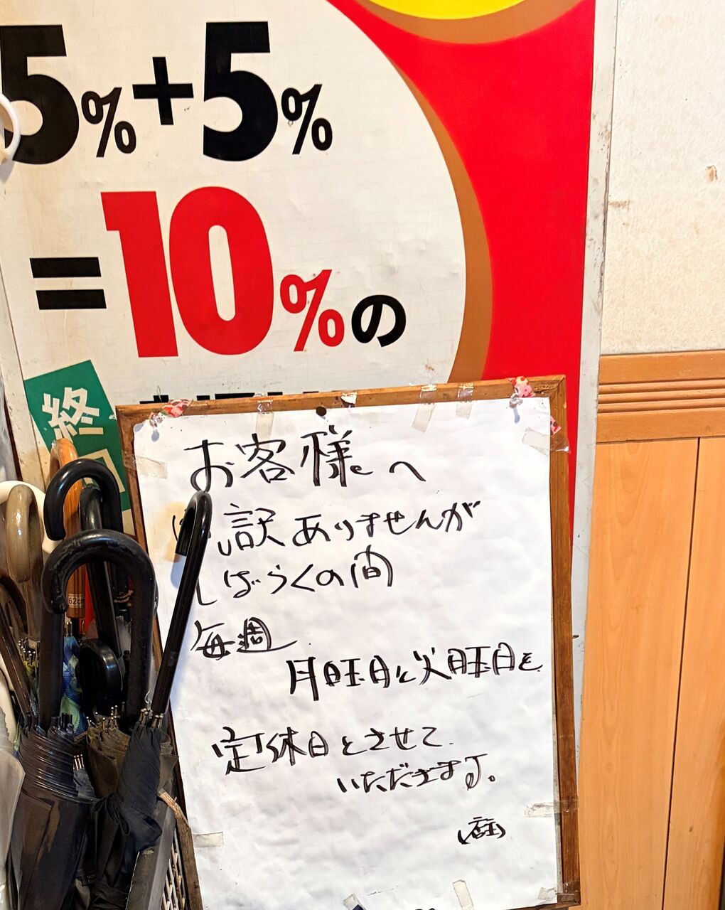 入口に定休日の案内。