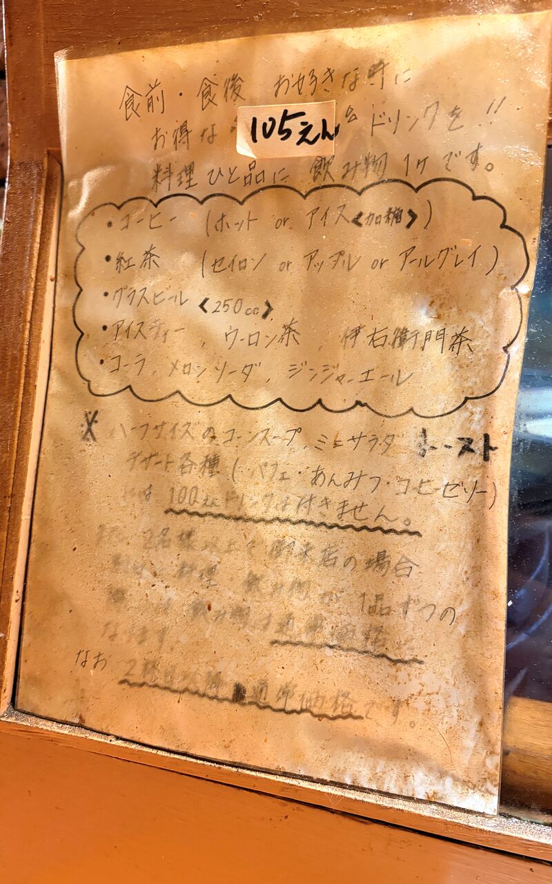 料理注文で105円ドリンクも。