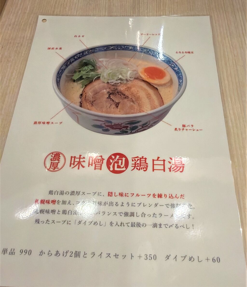 でもこの味噌泡鶏白湯は1000円を切るのか。