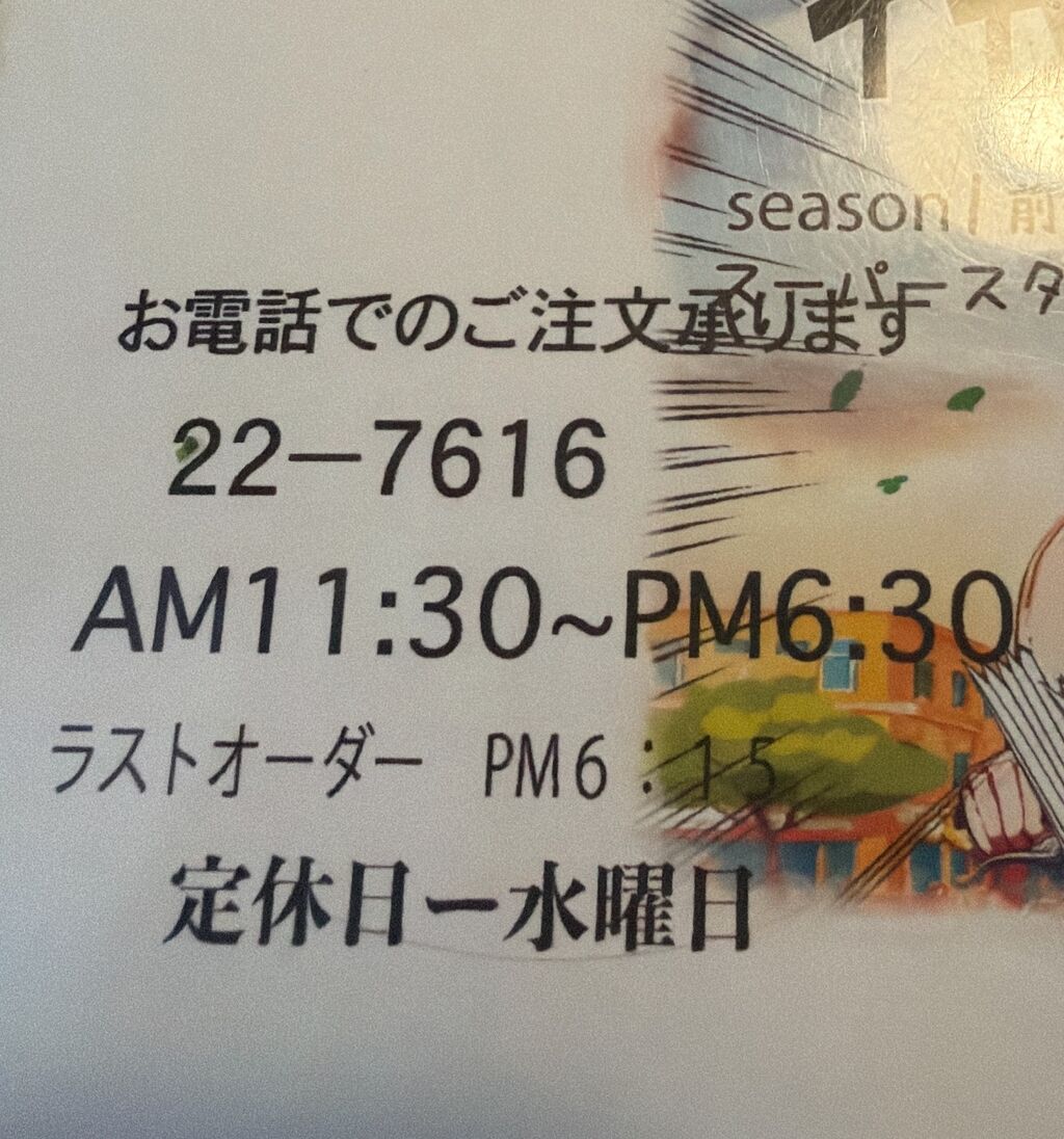 営業時間は、上の画像のとおり。