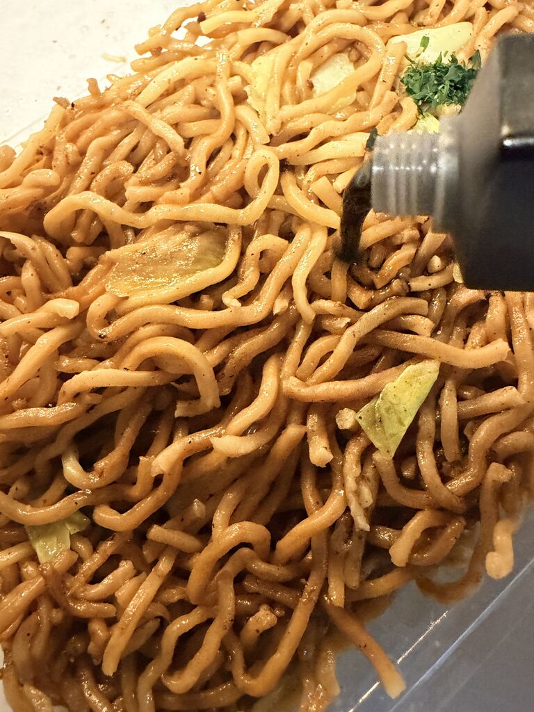 パックに上手につめられた焼きそばは熱々。